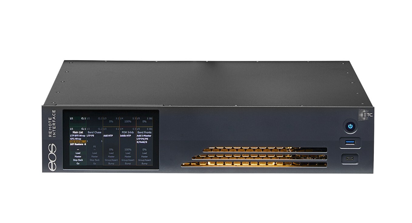 Интерфейс доступа в систему Eos обеспечивает возможность управления и мониторинга шоу. Интерфейс в рэковом исполнении без физических органов управления, подходит для использования в качестве точки для мониторинга шоу или компактной точки управления системой (при наличии в системе полноценного устройства управления серии Eos). Встроенный дисплей с высоким разрешением 5" с мультисенсорным интерфейсом с тактильной обратной связью.