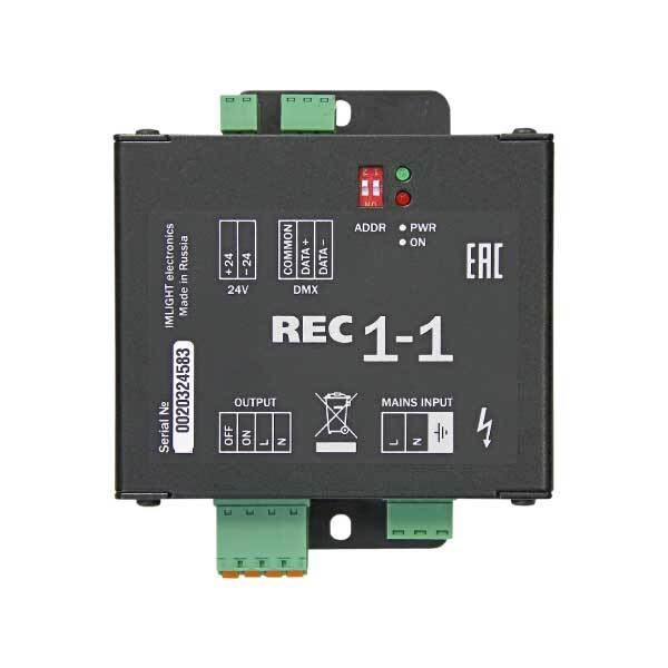 Блок REC1-1 позволяет дистанционно управлять электроприводом силового автомата по протоколу DMX512 или сигналом 24V.