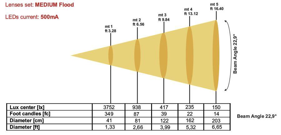 FOCUS оснащён 3 Full Color (RGBW) LED выдающим 3752 Люкса на 1 метре при угле раскрытия в 22 градуса.