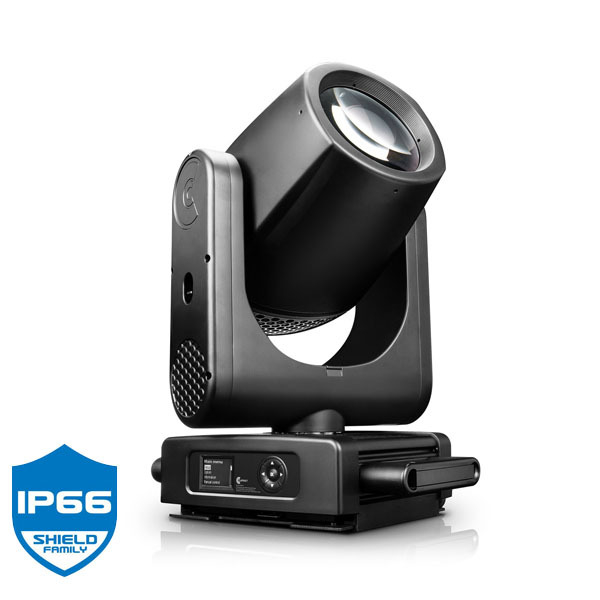 Вращающаяся голова BEAM-IP66. Лампа 250 Вт 7200К 6000 ч, угол раскрытия луча 2,5°, световой поток 11192 лм, синтез цвета CMY, бесконечное вращение PAN