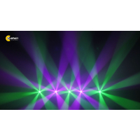 Источник света: LASER-модуль RGB 20 Вт. Диапазон угла раскрытия луча 1°-4°, равномерное пятно без хотспота. Блок эффектов: фильтр размытия луча, 6-гранная линейная и 16-гранная круговая вращающиеся призмы.
