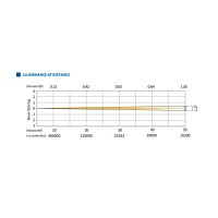 Фронтальная линза диаметром 135 мм дает почти идеально равномерный по распределению света и практически параллельный луч с углом расхождения в 1,2° и освещенностью на 20 м 120 000 люкс. Луч настолько ровный, что на дистанции 50 м диаметр пятна освещения составляет всего 1 м. Прибор относительно безопасен и имеет протоколы испытаний безопасности TUV.