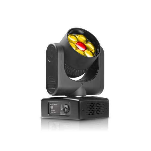 Миниатюрный, легкий и динамичный прожектор. Предназначен для работы на небольших площадках в качестве заливающего прожектора либо как эффектное дополнение для средних и больших площадок. Патентованная оптическая система обеспечивает очень узкий и насыщенный луч на минимальном угле раскрытия, в том числе для независимо управляемого центрального LED-чипа (пикселя). Рабочее расстояние до 20 метров (освещенность >1000 люкс).