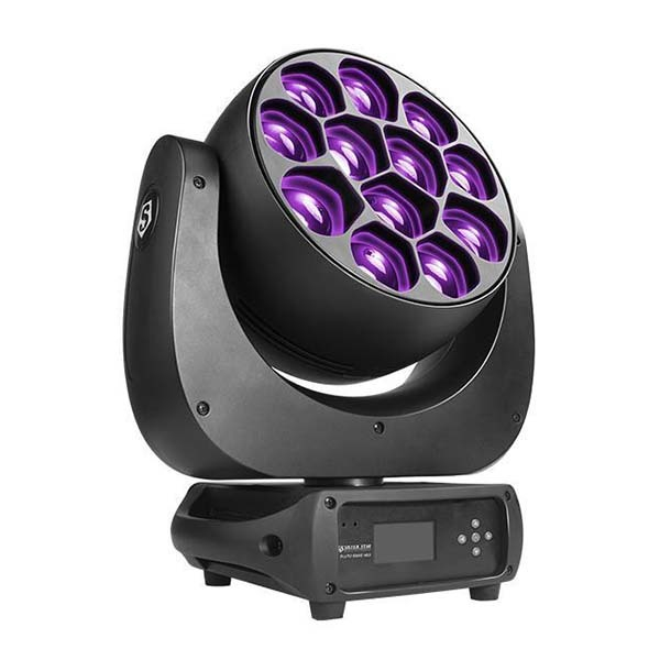 SS9371XHE PLUTO 4000HEX MK2– новая модель (2 модификация, LED чип 2-ого поколения) супер яркой WASH поворотной головы на 12 х 60 Вт светодиодных мультичипах OSRAM с синтезом цвета RGBALC (RGB+Amber+Lime+Cyan). Благодаря обновлённому LED модулю цветовой диапазон значительно расширился, цвета стали ярче, а индекс цветопередачи достиг CRI>95 (в версии МК2). Технология CCS3.0 дает повторяемость результата в любой серии производства, 24 встроенных «театральных» симулятора фильтров Rosco и Lee, изменение цветовой температуры CCT 2700-8000K, что дает дополнительные возможности художникам по свету. В данной модели улучшили светоотдачу на 15% и реализовали зум 8°-36°. На минимальном угле луча сила света достигает 327 800 Кд. Максимальный зум в 36 градусов дает широкий и равномерный луч без паразитных цветовых засветок или RGB теней, при этом не дает лишнего широкого поля освещения за пределами своего зума, что справедливо для любого угла раскрытия этого прибора.