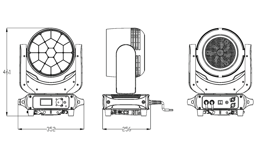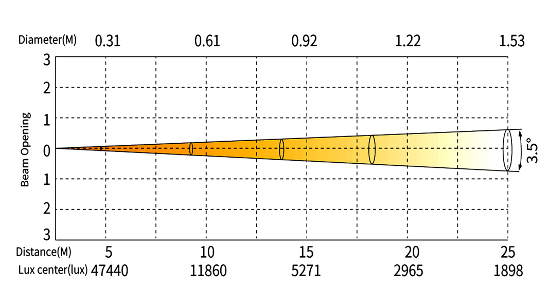 19х40 Вт LED матриц дают очень высокий выход световой энергии и на минимальном зуме, на дистанции 5 м выдает 47 440 люкс!!! Или 1 186 000 кандел!! Это весьма достойно.