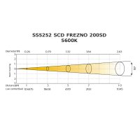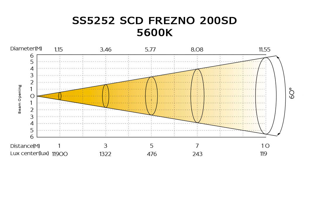 Стабильная цветовая температура 5600К с силой света 104500 кандел, (аналог 2000 Вт лампе), мягкое, равномерное поле освещения позволяют использовать FREZNO 200SD совместно с галогеновыми лампами, а лучше вместо них. Опционально можно установить 8-ми лепестковые кашетирующие шторки для снижения бокового ослепления и задания формы луча, цветовые и размывающие фильтры.