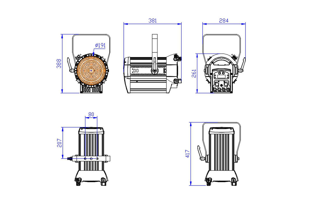 Театральный LED прожектор с линзой Френеля на «холодных» светодиодах
