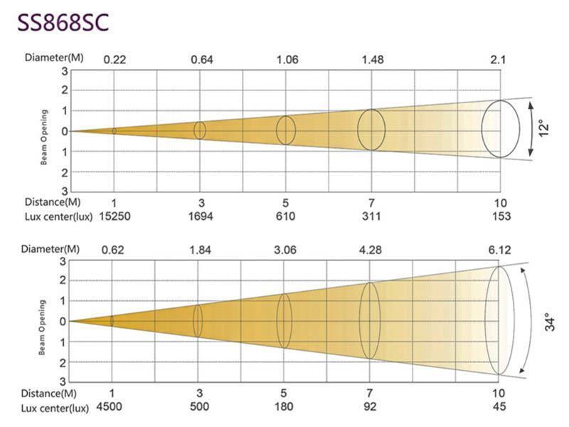 Прожектор выполнен с ручным зумом 12° -34°, для удобства работы - сзади установлен ручной регулятор диммера. Управление 16 bit димером и задание стартового адреса - по протоколам DMX/RDM. Кабели питания и управления с разъемами XLR 3pin вх./вых. встроены в корпус прибора. При малых энергозатратах прожектор выдает 610 люкс на 5 м при мин. угле раскрытия луча, что идеально подходит для небольших театральных площадок, музеев, телестудий, выставок, галерей, отелей и магазинов.