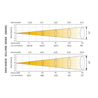 Модель на «холодном» LED SS5153SСD 5600К при использовании 19° линзового тубуса выдает освещенность 2086 люкс на 10 м, или 208600 кд. В «профильнике» установлен новый светодиод в 300 Вт, который используется с блоком питания 240 Вт, что значительно повышает его ресурсные возможности.