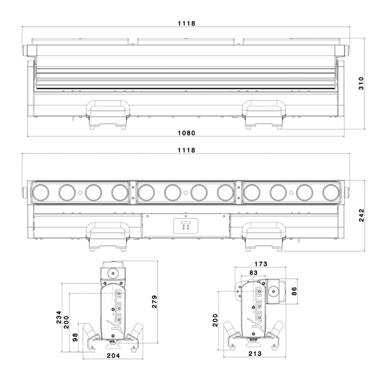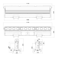 Светильник типа BAR с TILT / 12x20 Вт. / RGBW / ZOOM: 3-30° / 9600 Лм / 170 000 Кд / 6800 Лк @ 5м / Попиксельное / Tilt: 190° / IP20 / 19,5 кг / до 20 м