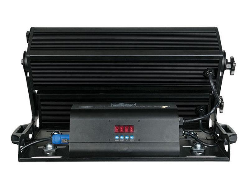 Оптика 50°х60° дает широкую заливку поверхности, а 2 подвижные секции прибора с индивидуальным управлением мощности дают еще более увеличенное поле освещения, чтобы идеально ровно залить задник театральной сцены или студийную площадку. Индекс цветопередачи более 90 Ra при калибровке цветовой температуры «белого» от 2700К до 8000К. Максимальная освещенность на 5 м 760 люкс и это при таких широких углах. 6 вариантов управление DMX-512, в том числе HSIC управление цветом, авто режим, персональные программы, цветовые макросы, строб-эффект до 25 Гц, 16 bit диммер. Потребляя всего 340Вт, прибор является наиболее мощным театральным заливным прибор на рынке.
