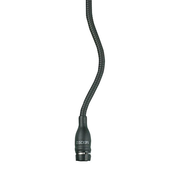 Shure MX202B/C — миниатюрный конденсаторный микрофон с кардиоидной диаграммой направленности, который предназначен для сценического и студийного использования при озвучивании хоровых ансамблей. Микрофон имеет обладает широким частотным и динамическим диапазоном, обеспечивает максимально точную передачу сигнала с минимальным вмешательством других звуковых источников. Микрофон оборудован гибким креплением типа «гусиная шея».