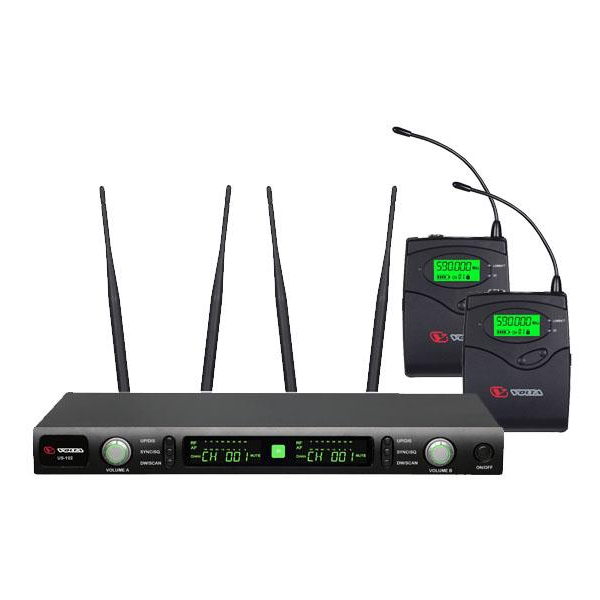 Профессиональная беспроводная микрофонная система UHF-диапазона многоканальная с 2 головными микрофонами и 2 карманными передатчиками