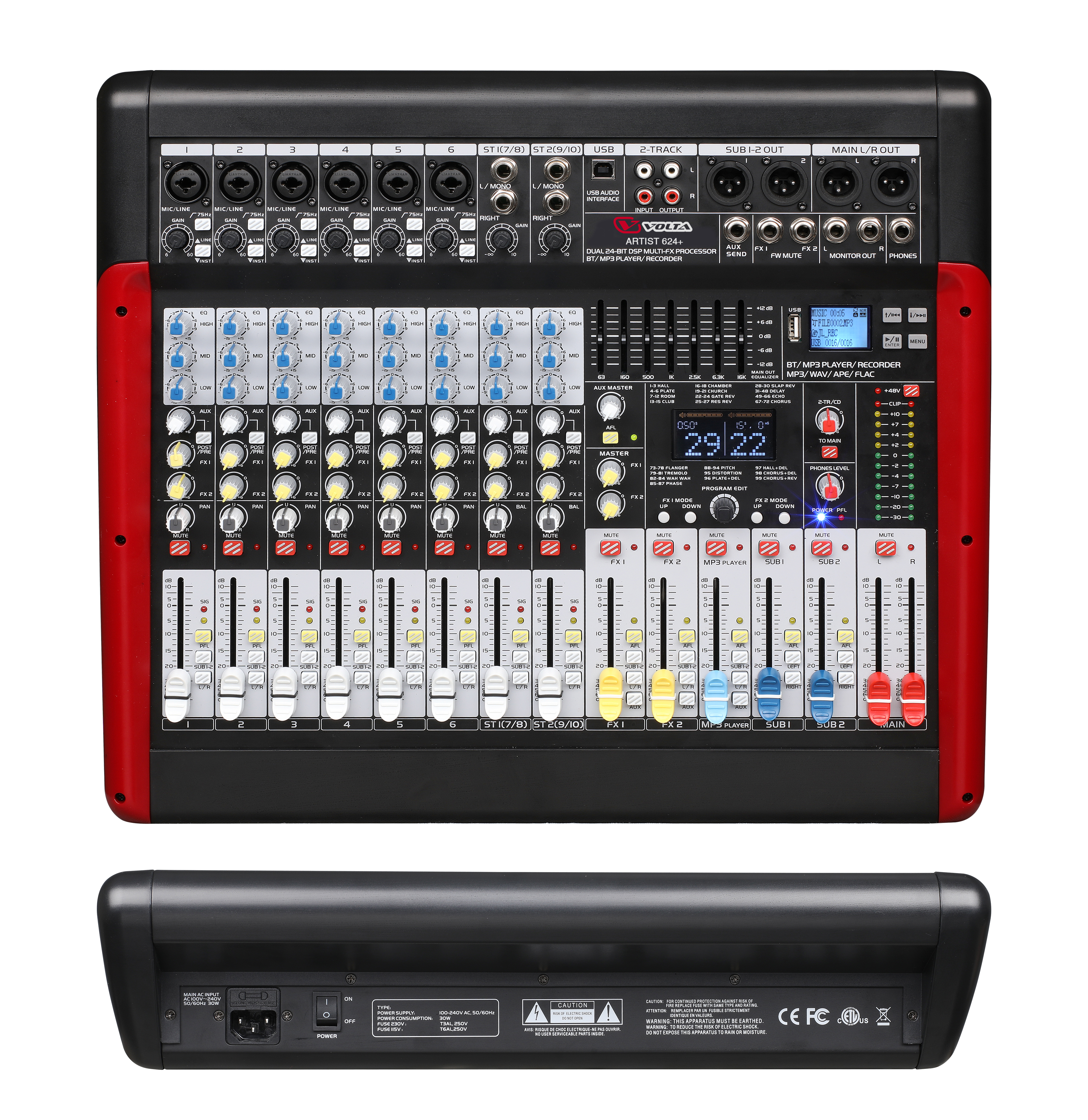 Микшерный пульт VOLTA ARTIST 624+ предназначен для использования в комплектах звукоусиления для сведения сигналов от различных источников — микрофонов, музыкальных инструментов, различных плееров и ПК.