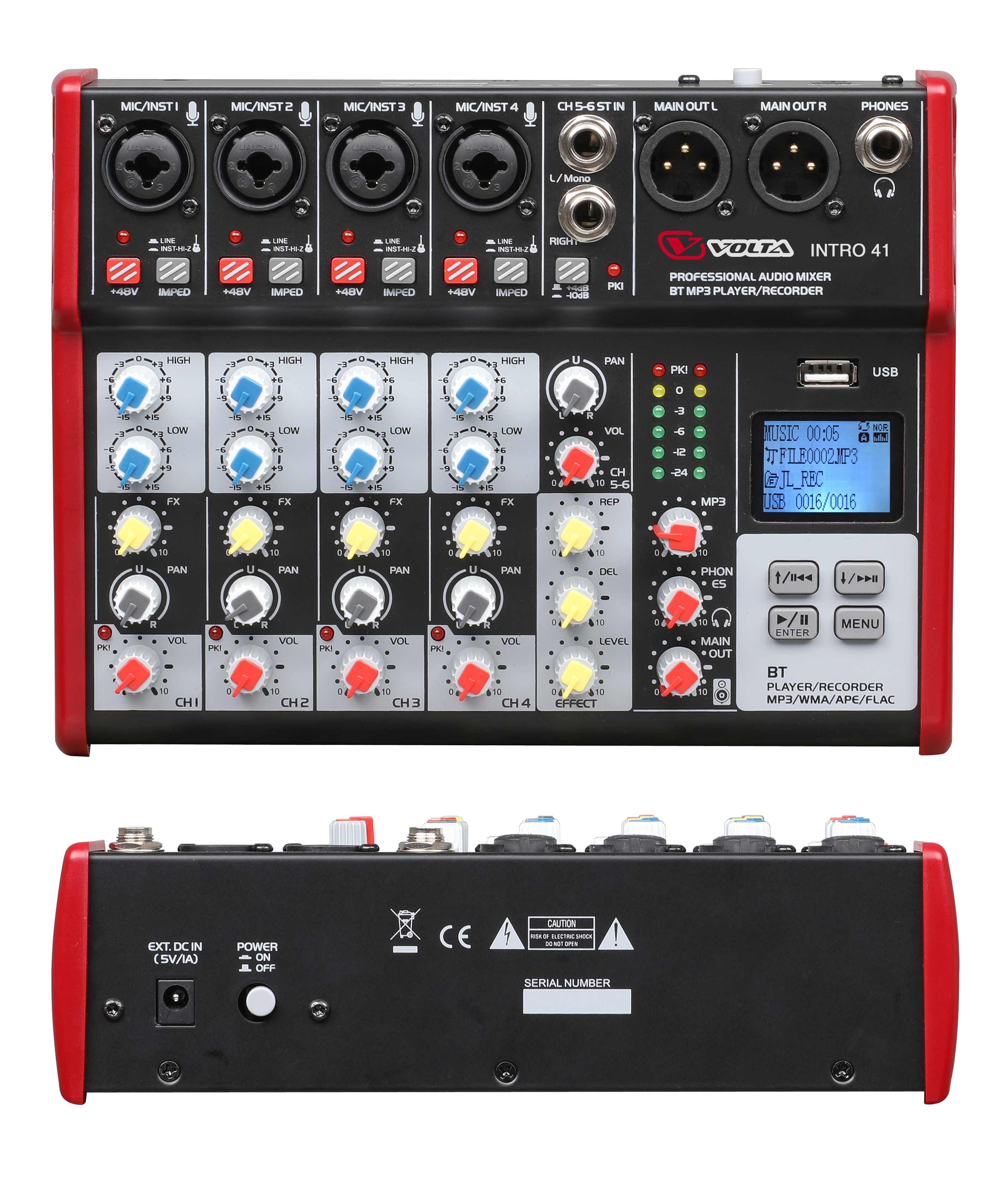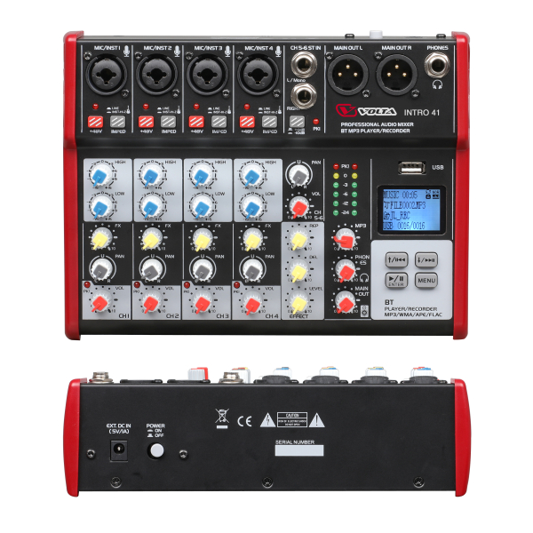 Главной особенностью микшера INTRO 41 является многоформатный аудиоплеер, позволяющий воспроизводить файлы с USB-Flash-накопителя или через Bluetooth. Также микшер можно использовать в качестве рекордера.