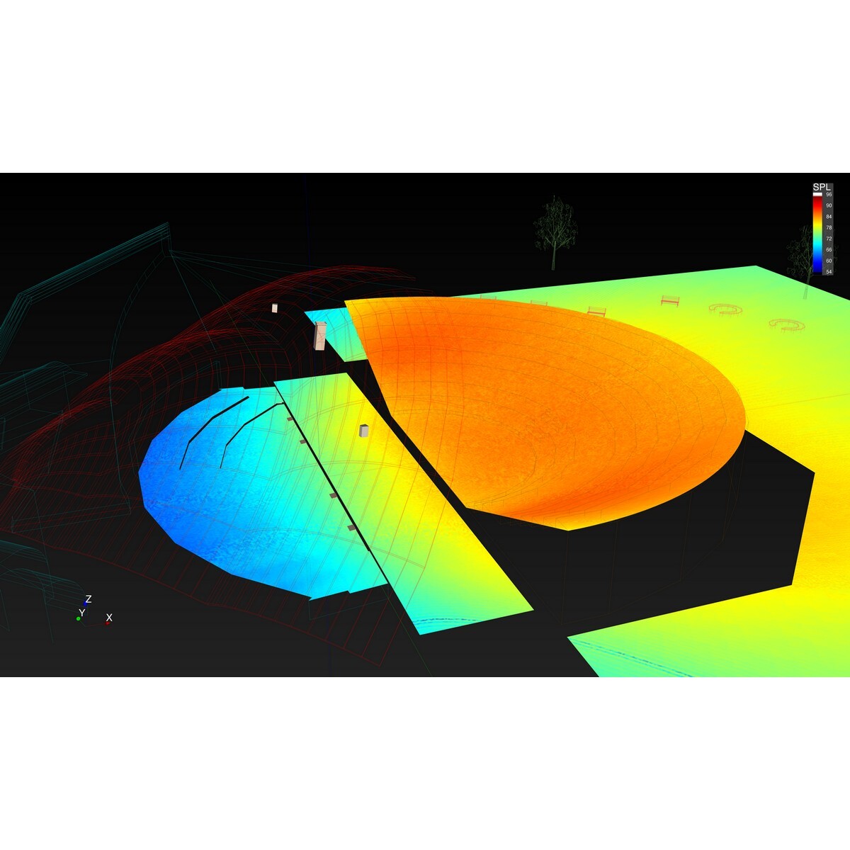 • Реальные прогнозы максимального уровня звукового давления и равномерности звукового поля.