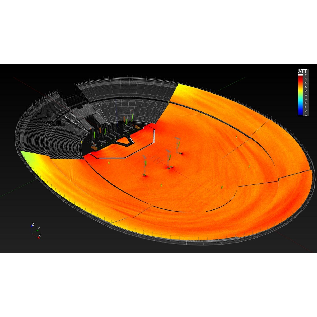Точность прогнозов в MAPP 3D обеспечивается точностью измерений громкоговорителей Meyer Sound. Характеристики каждого громкоговорителя из библиотеки программы основаны на трехмерных измерениях, выполненных в более чем 65000 точках с разрешением 1/48 октавы. Измерения проводятся в безэховой камере Meyer Sound. Непревзойденная согласованность и однородность характеристик громкоговорителей, обуславливается жесткими требованиями к допускам и контролю качества Meyer Sound и гарантирует точность прогнозов полученных в MAPP 3D.