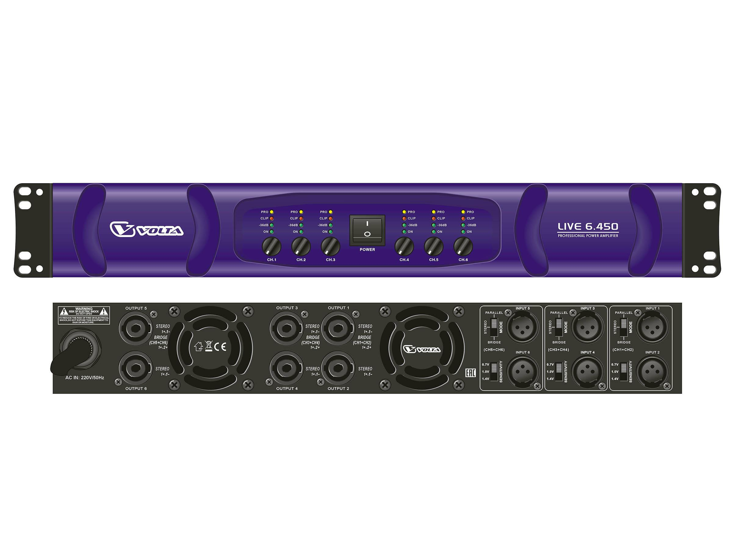 Профессиональный усилитель мощности VOLTA LIVE 6.450 предназначен для использования в стационарных и мобильных звуковых комплектах совместно с любыми акустическими системами.