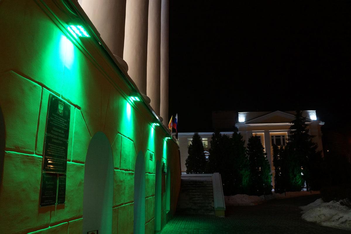 Накануне новогодних праздников, 29 декабря 2015 года один из учебных корпусов Воронежского государственного архитектурно-строительного университета в прямом смысле засиял. Причиной тому стала яркая светодизайнерская подсветка, торжественное включение которой состоялось в присутствии официальных лиц города во главе с ректором вуза Сергеем Колодяжным.