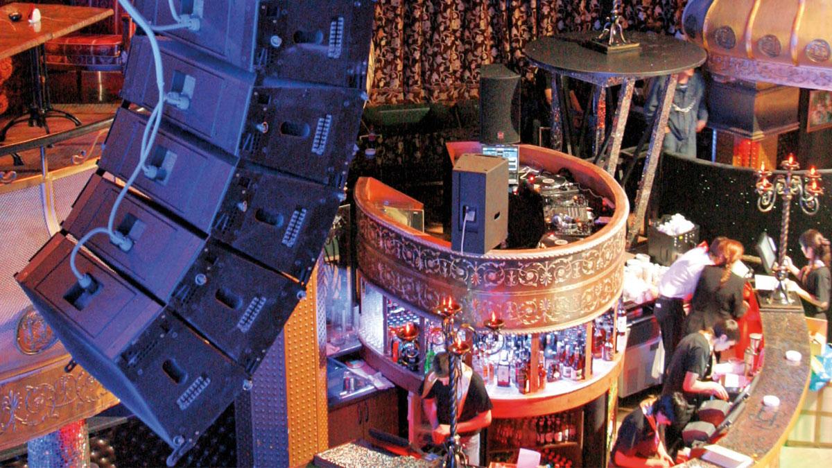 Сложная архитектура помещения с множеством отражающих и вогнутых поверхностей предъявила особые требования к организации звукотехнического комплекса клуба. Для устранения акустических недостатков самого зала все пространство клуба было разбито на шесть озвучиваемых зон с независимой регулировкой параметров звучания и времени задержки.