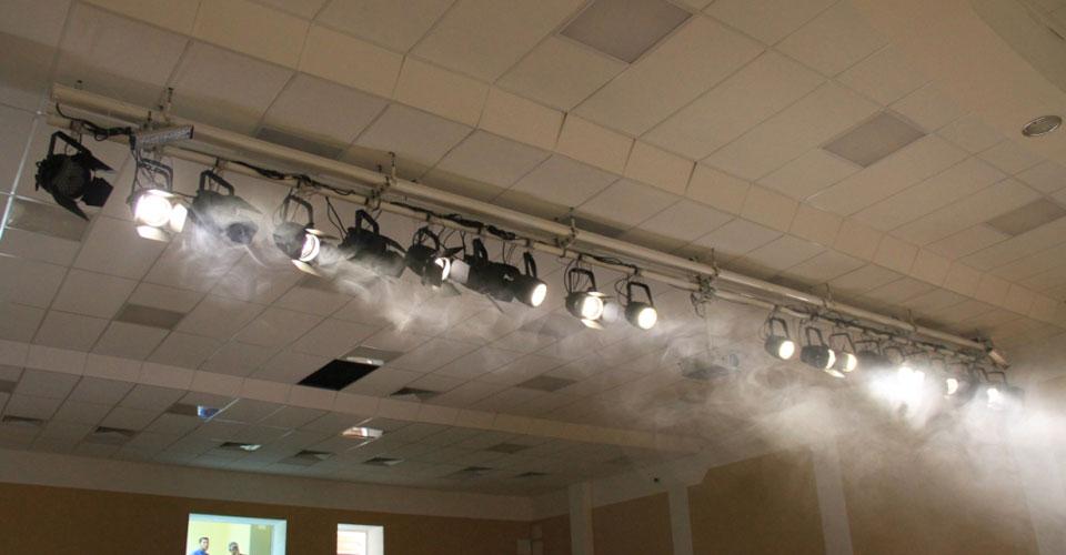 Весь комплекс постановочного освещения дома культуры построили на базе светодиодных приборов, применение которых сразу же решает несколько задач: потребляемая мощность сводится к минимуму, сокращаются затраты на замену ламп, а тепловыделение практически отсутствует, что для маленьких залов весьма существенно.