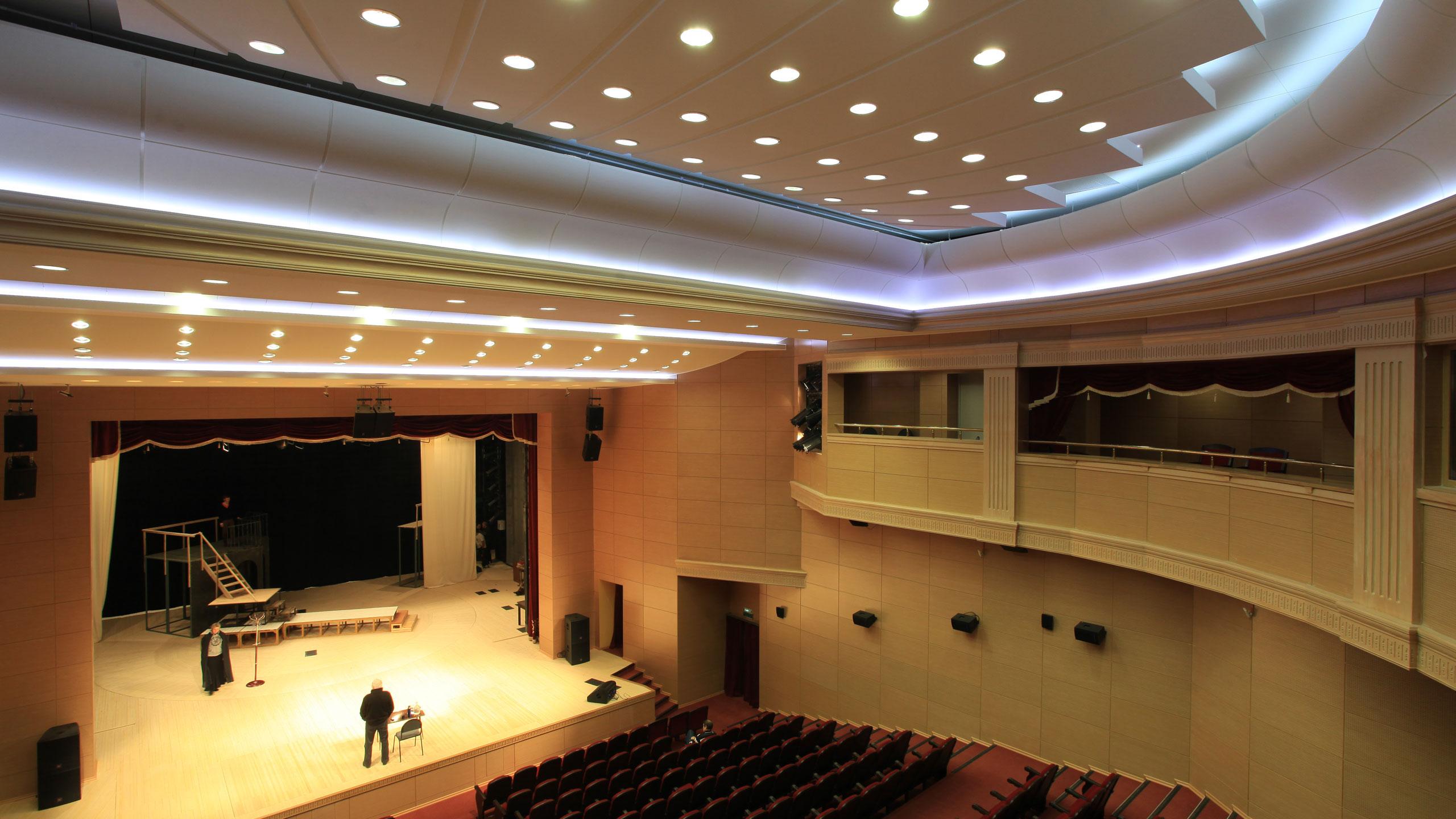 Большая часть ремонтных работ уже завершена, введены в эксплуатацию основные театральные помещения: фойе, холлы, гардеробные, гримерные, буфет, репетиционные залы, пультовые, технические комнаты и, конечно же, большой зрительный зал. По проекту в обновленном театре предусмотрено два зала – большой на 300 мест и малый – на 60. Сценическая механика, звук, свет – всё самое современное.