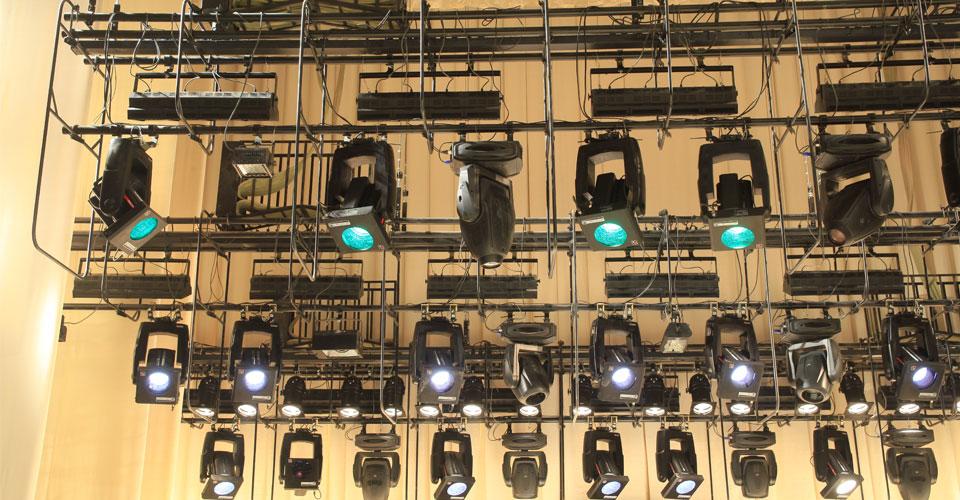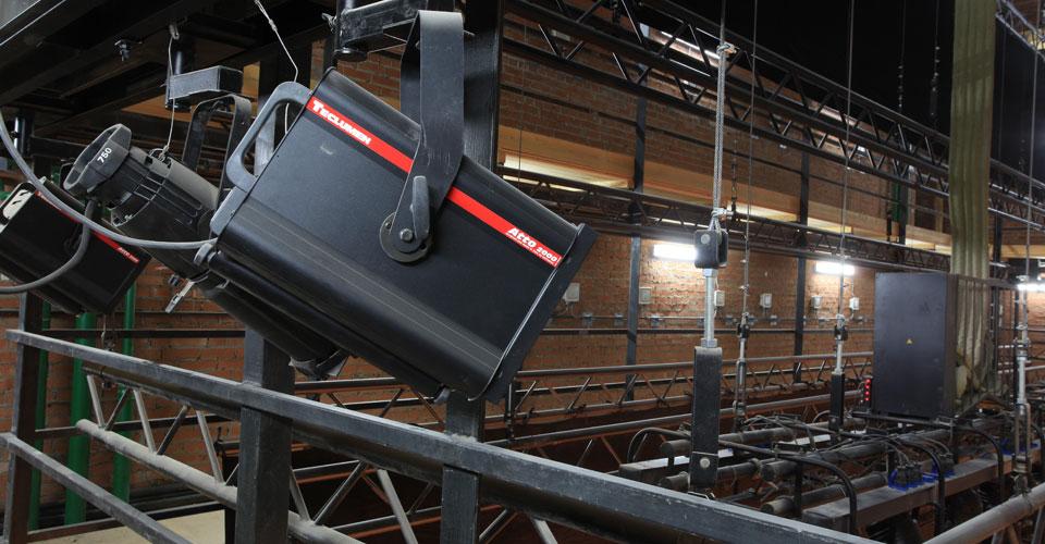 Для оформления светового пространства был поставлен комплект классических театральных светильников и прожекторов торговых марок ETC, Teclumen, IMLIGHT, а также прожекторы со светодиодными источниками света Silver Star. Динамические эффекты сцены обеспечили «поворотные головы» от D.T.S. и генераторы спецэффектов Le Maitre.