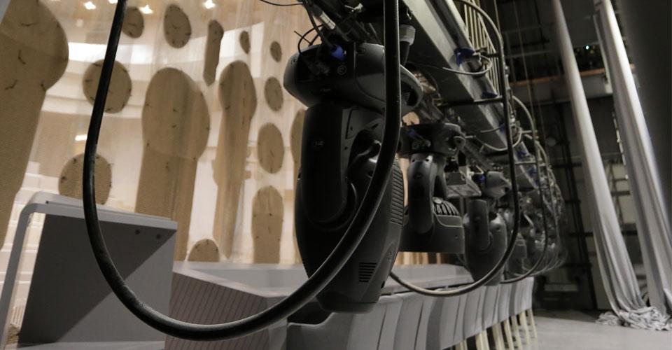Для универсального зала на 250 мест была разработана система технологического оборудования, рассчитанная на проведение разноплановых мероприятий – от презентации или конференции до театрального представления или концерта. Государственный уровень объекта предполагал использование самого современного и высококачественного звукового, светового и механического оборудования.