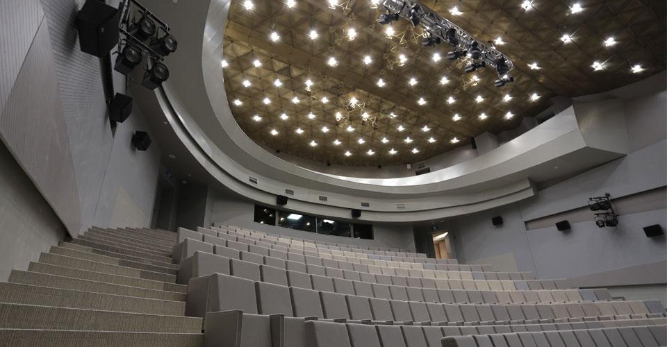 Благодаря отличной акустической обработке, звучание в зале будет идеальным как во время масштабных концертов, так и во время более тихих театральных постановок. Кроме того, в комплект поставленных акустических систем входят колонки каналов эффектов для построения системы Surround в зале. Это техническое решение позволяет использовать громкоговорители зала в нескольких режимах: для воспроизведения звука в формате Dolby 5.1 во время проведения кинопоказов, а также для воспроизведения многодорожечных фонограмм в театральных постановках с использованием пространственных эффектов.