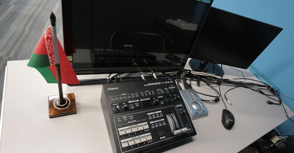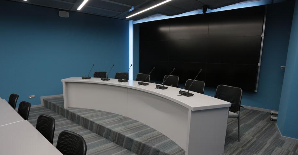 Дополнительно установлена и интегрирована со звуковой системой система синхроперевода. Конференц-зал посольства предназначен прежде всего для проведения круглых столов и пресс-конференций. В связи с этим основной упор снова был сделан на мобильность оборудования. Помимо стандартных настольных консолей и видеостены, в зале предусмотрены переносные акустические комплекты для проведения интервью в любом месте посольства. Для прессы установлено мобильное осветительное оборудование для телесъёмок, пресс-боксы для подключения аудиоаппаратуры и специальные места для телекамер.