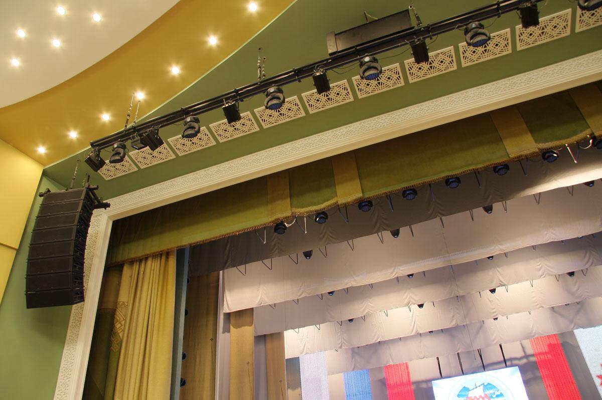 | Особенности проекта | Масштабное использование прожектров и светильников со светодиодными источниками света: - 24 прибора SILVER STAR YG-LED332XW BOOMER X2/TZ (50% всех приборов в группе "поплановое освещение") - 72 прибора DTS NICK WASH 600 (100% всех приборов в группе "верхний заливающий свет") - 16 приборов SILVER STAR YG-LED317XWA (100% всех приборов в группе "рампа") Многофункциональная модульная система отображения медиаинформации: - светодиодный экран (гибкая сетка) MR.LED MR Helix P37,5 - 8,4х6,0м - светодиодный экран высого разрешения MR.LED P10 SMD IN SCREEN - 3,84х2,88м - видеостудия Datavideo - видеосервер CATALIST Реконструкция существующего поротивопожарного занавеса, поворотного круга, с частичной заменой элементов Комплектация пультовых объекта специализированой мебелью Система подвеса звуковых массивов с электрическим приводом Большое количество индивидуальных решений (специализированные столы звукорежиссера, художника по свету) Системы трансляционного озвучивания, звукового оповещения и подачи звонков решены одним комплексом, что дает возможность гибкого управления системами всеми необходимыми службами |