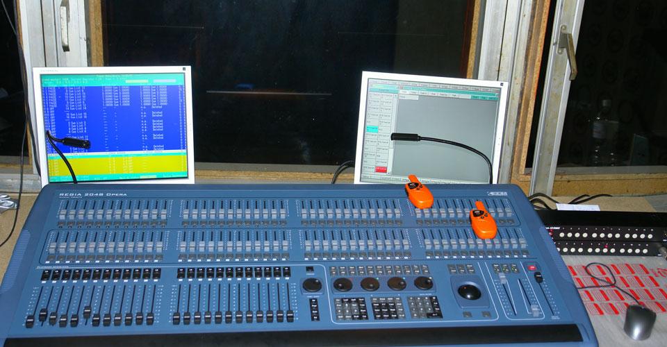 | Спецификация оборудования | Консоли управления – SGM REGIA 2048 (Италия) Система распределения сигнала – IMLIGHT (Россия) Диммерные блоки – IMLIGHT (Россия) Блоки управления нерегулируемыми нагрузками - IMLIGHT (Россия) Система распределения питания – IMLIGHT (Россия) Прожекторы линзовые и светильники заливающего света – IMLIGHT (Россия) Прожекторы следящего света - SGM (Италия) |