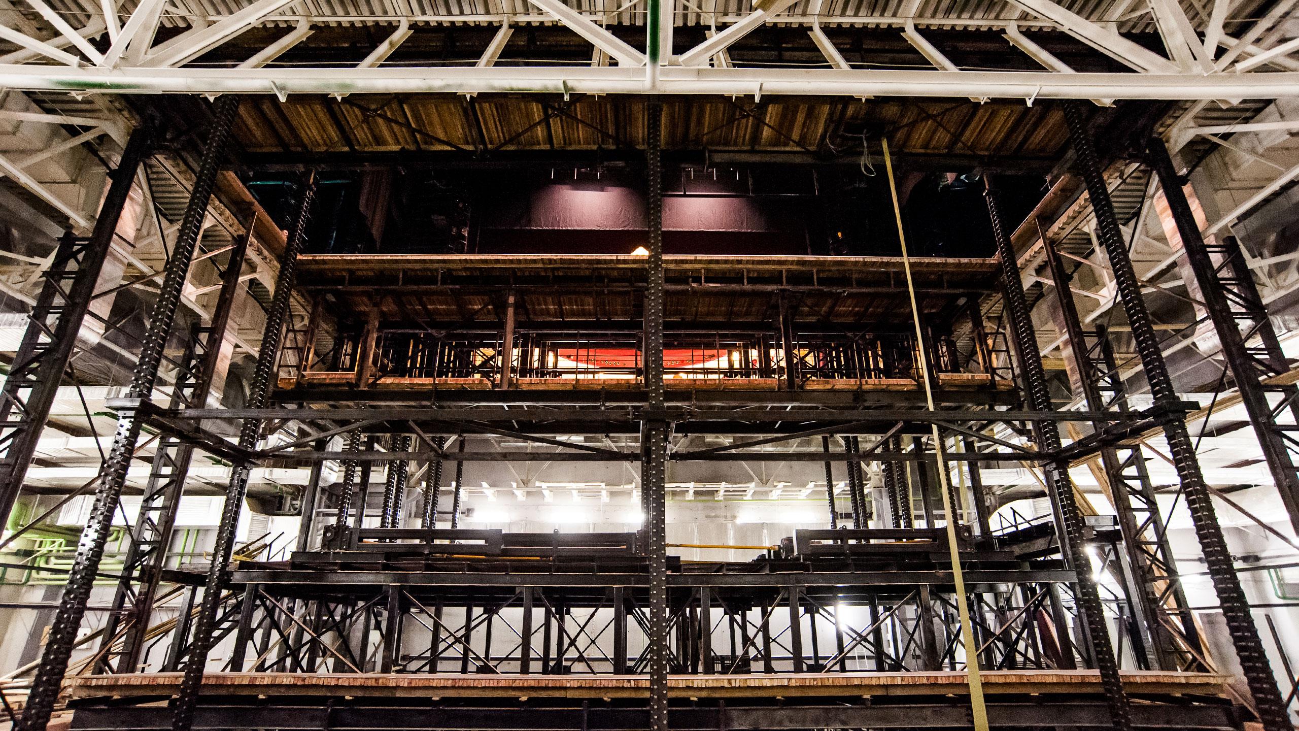 Масштабы подъемной части сцены, реализованные на данной площадке, впечатляют. Это 17,5 на 16 метров, разделенные на 5 подъемных площадок суммарной грузоподъемностью 196 тонн. Первые три площадки сделаны 2-ярусными для возможности установки люков-провалов, которые обеспечивают эффектное появление артистов на сцене. Так как разница высот между планшетом сцены и трюмом составляет практически 10 метров, то реализация такого проекта стала непростой задачей для специалистов даже в рамках компании Serapid.