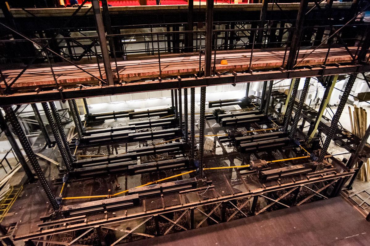 Более того, был создан подъем выше планшета сцены еще на 3 метра. В результате установки нижней механики оркестровая яма теперь практически бесшумно поднимается до уровня планшета сцены, тем самым увеличивая площадь авансцены.