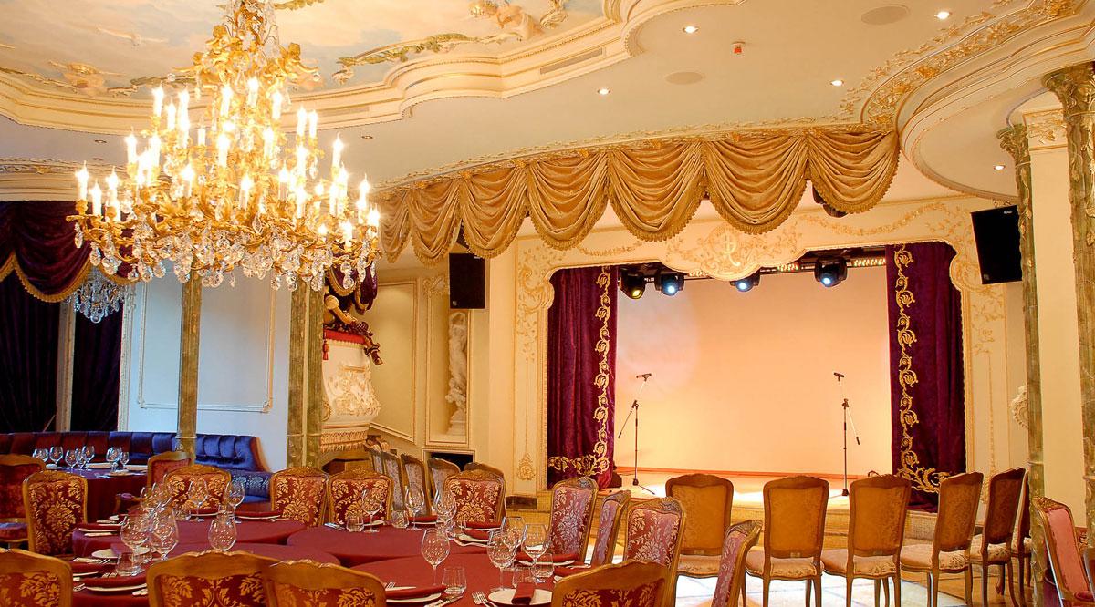 Но что делать, если сама идея зала не подразумевает никакой трансформации: например, если это фешенебельное заведение? Что делать, если сложный и дорогой интерьер практически исключает возможность трансформации пространства и использования дополнительного оборудования, но при этом от идеи универсальности никто не отказывается?