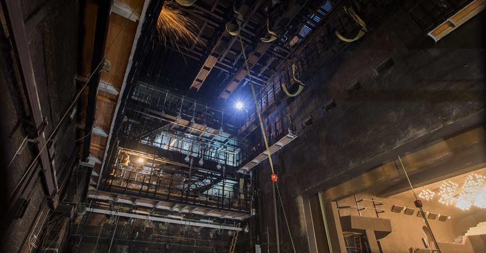 Компания «Имлайт» приступила к работам в «Современнике» в феврале 2018 года, и уже этой осенью грандиозная реконструкция культового московского театра вышла на заключительный этап. Театр обретает форму и содержание. Если дизайн интерьера пока держится в секрете, то нижняя механика сцены уже заняла свое место.