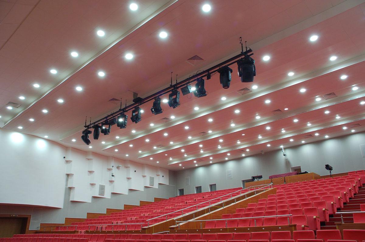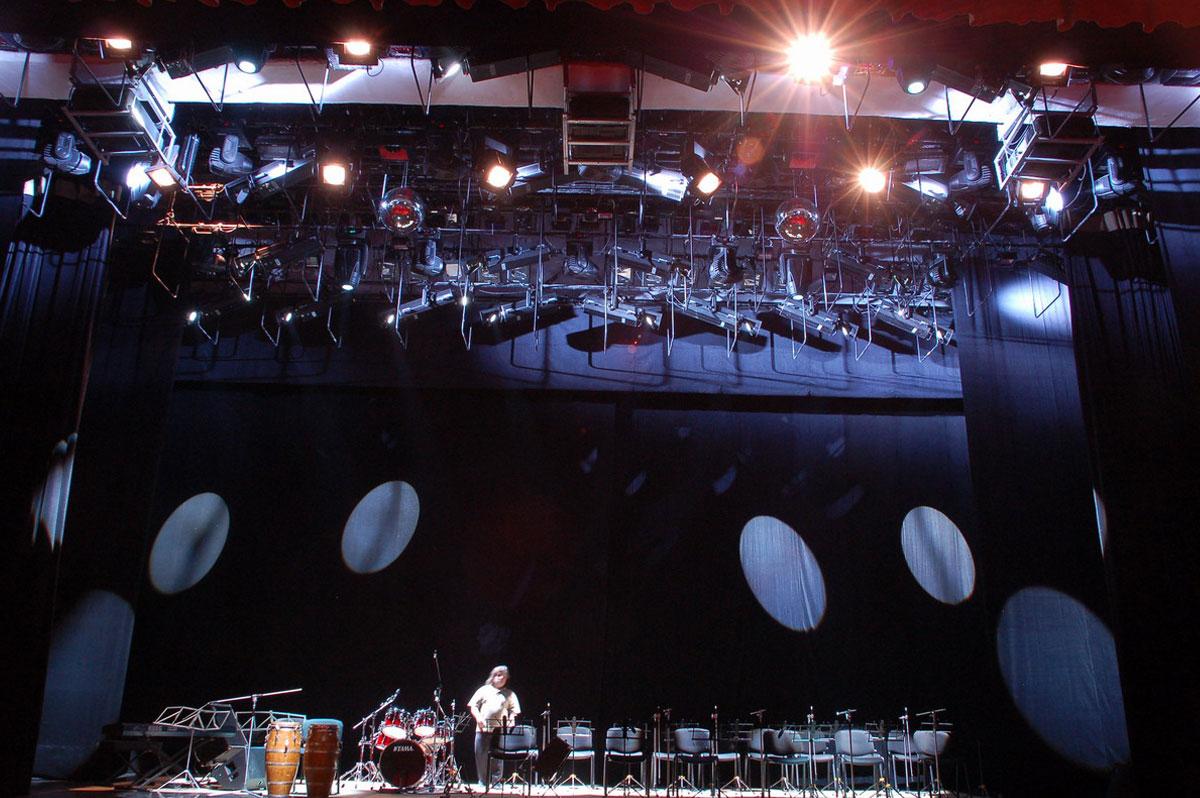 | Спецификация оборудования | Механика сцены Софитные подъемы производства IMLIGHT (Россия) Световое оборудование Прожекторы на поворотной лире – SISTEMA (Россия) Прожекторы линзовые – TECLUMEN (Италия) Профильные прожекторы – TECLUMEN (Италия) Светильники заливающего света – TECLUMEN (Италия) Рабочее освещение – IMLIGHT (Россия) Прожекторы следящего света – TECLUMEN (Италия) Вращающиеся головы – SGM (Италия) Сканеры – SGM (Италия) Парблайзеры – DTS (Италия), ETC (США) Колорченджеры – Studio Due (Италия) Светодиодные колорченджеры – SGM (Италия) Эффектные прожекторы – Studio Due (Италия) Стробоскопы – Martin Professional (Дания) UV-прожекторы – IMLIGHT(Россия) Генераторы дыма и тумана – Le Maitre (Англия) Вентиляторы – Martin Professional (Дания) Генераторы эффектов – F.A.L. (Италия), Le Maitre (Англия) Силовые блоки – IMLIGHT (Россия) Световые консоли – Compulite (Израиль) Звуковое оборудование Основная портальная система – X-Treme Linear Source Array (Италия) Мониторная система, арьерные каналы эффектов – X-Treme (Италия) Каналы окружения - Peecker Sound (Италия) Усилители мощности – Lab.Gruppen (Швеция) Приборы управления и обработки – MIDAS (Англия), Klark Teknik (Англия), SABINE (США), t.c.electronic (США), Lexicon (США) Микрофонный парк – Shure (США), Beyerdynamic (Германия), AKG (Австрия) Студия звукозаписи Рабочая станция, интерфейс, контроллеры – Digidesign на основе системы Pro Tools (США) Контрольные мониторы – KRK (США) Предусилители – FOCUSRITE (Англия) Микрофонный парк – NEUMANN (Германия), Sennheiser (Германия), Beyerdynamic (Германия), AKG (Австрия) Видеопроекционное оборудование Видео проекторы – CHRISTIE (США) Видео проекторы на поворотной лире – High End System (США) Видео серверы – High End System (США) Натяжной и моторизированные экраны |