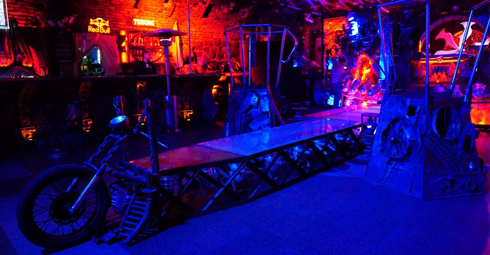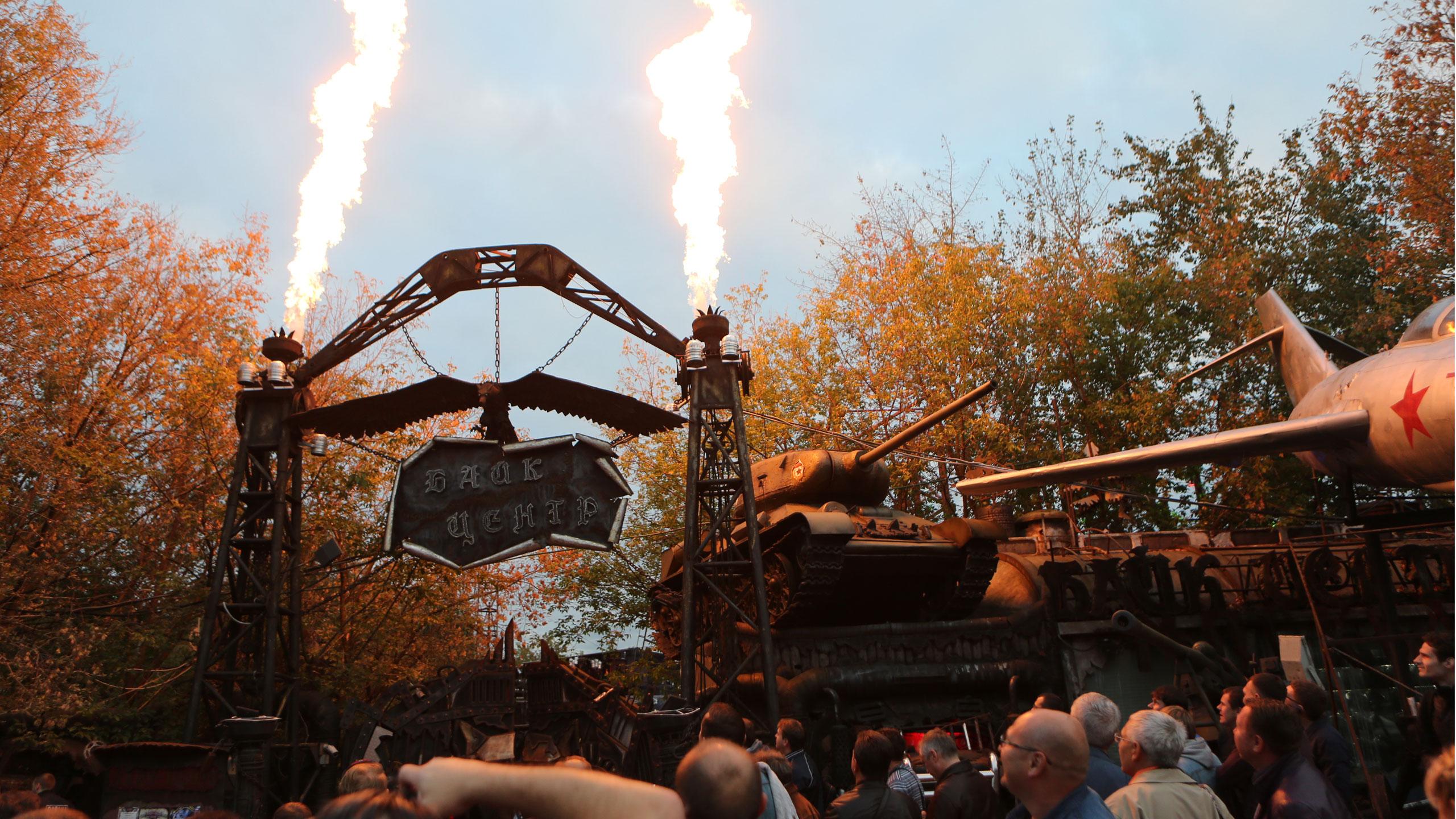 Забавно устрашающего вида металлические конструкции, собственноручно сооружённые «Ночными волками» из "потрохов" автомобилей, массивная мебель из дерева, отделанная шкурами диких животных, гигантские газовые фонари и горящие свечи, грузовики, танки и, конечно же, десятки мотоциклов всех времён - всё здесь заставляет затаить дыхание и оставляет неизгладимое впечатление!