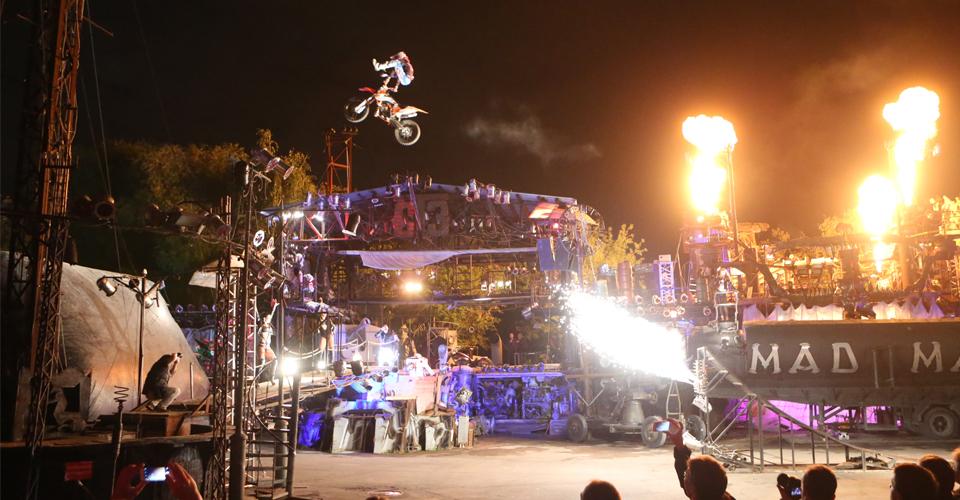 Но настоящий фурор производит поражающее своим размахом и уникальностью SEXTON-SHOW. Десятки взмывающих в небо мотофристайлеров, завораживающая игра барабанщиков в сопровождении дымовой завесы и феерического пиротехнического шоу, фирменный салют с 15-метровыми огненными залпами… Да что тут говорить, это нужно видеть!