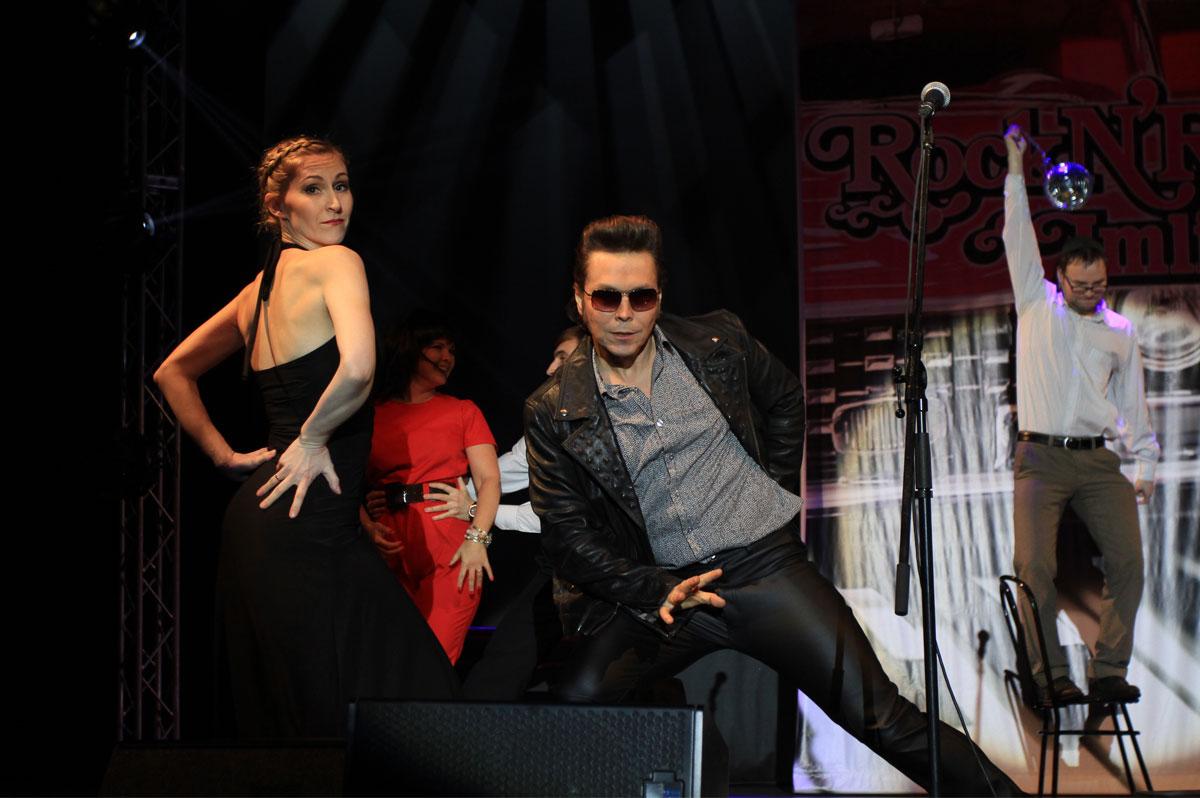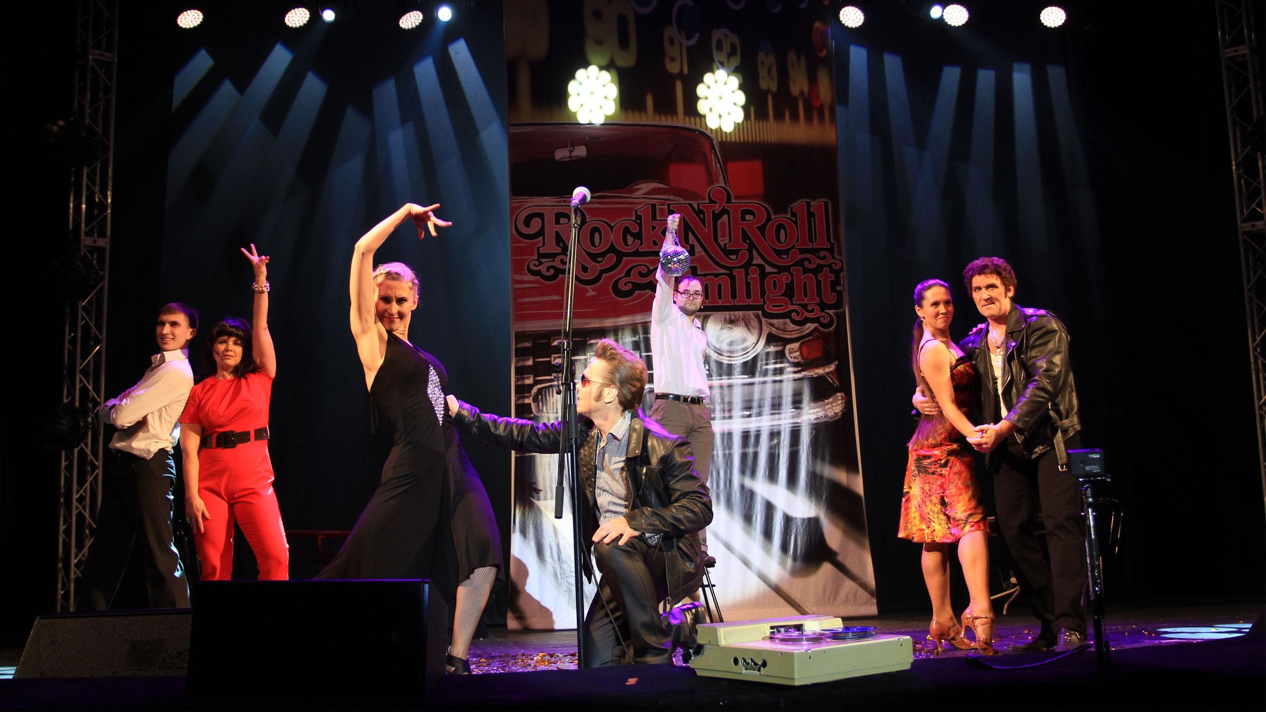Неуёмная творческая энергия руководителя дилерского отдела Сергея Котельникова продиктовала характер их номера: рок-н-ролл. …В уютное музыкальное кафе заявляется отвязная троица: Сергей Котельников, Ирина Котельникова, Сергей Колтун. И началось!.. Даже занудливый продавец зеркальных шаров (Ренат Сабреков) в финале запрыгивал на стул, неистово размахивая шаром, как булавой.
