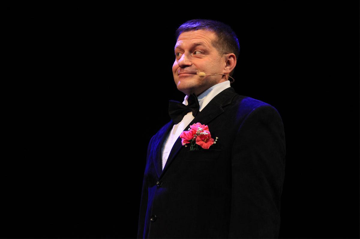 Ведущий вечера Андрей Мошонкин протестовал против фразы конферанса, которую не мог запомнить: «Мы родились в театре, и театральная хромосома прочно засела в творческом организме нашей компании».