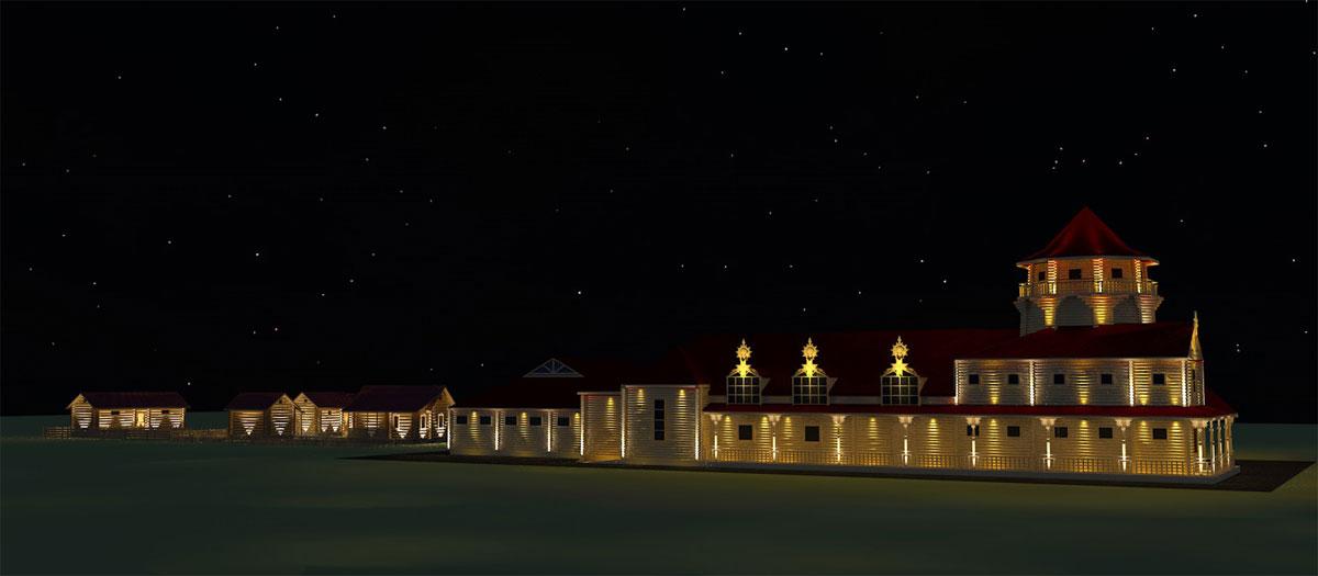 При разработке проекта архитектурного освещения подворья важно было подчеркнуть все архитектурные особенности возведенных построек.