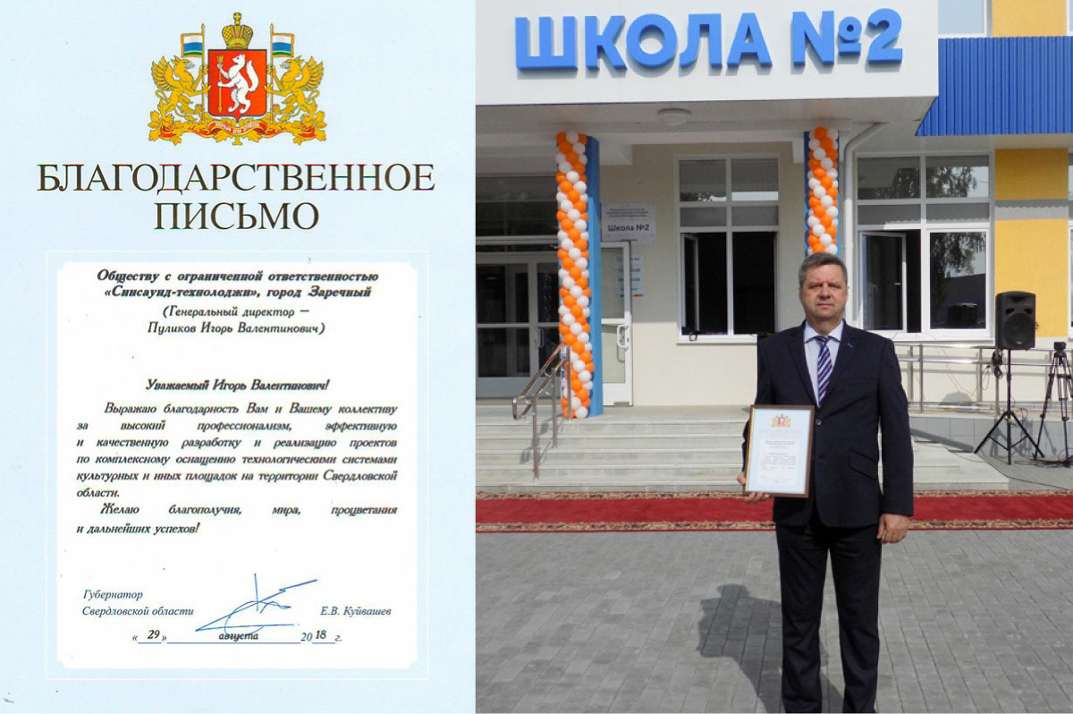 Это не первая награда «Синсаунд-технолоджи» от региональных властей. В прошлом году компания была отмечена Благодарственным письмом губернатора как активный участник реализации десятилетней федеральной программы по строительству, ремонту и реконструкции школ (сейчас в портфеле компании 23 реализованных и более 30 разработанных проектов по техническому оснащению современных школьных залов).