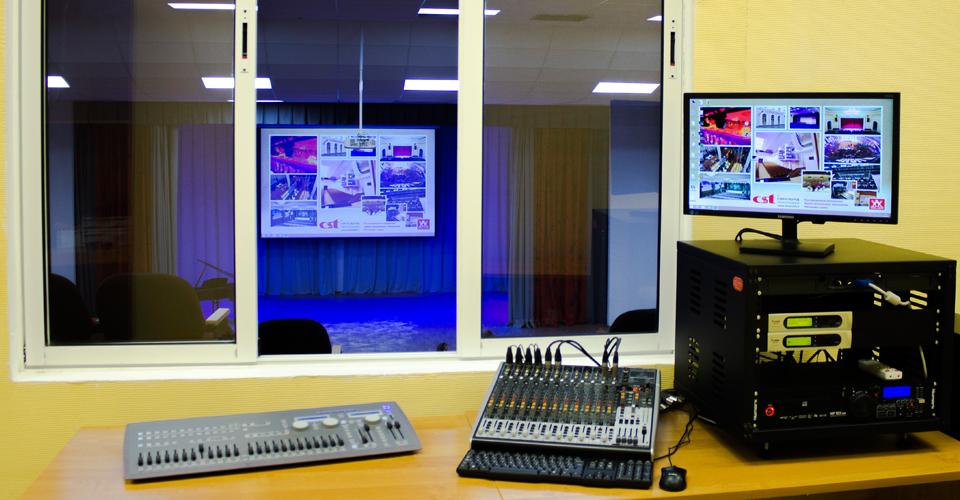 Разработка проектной документации и последующий монтаж оборудования выполнены специалистами компании «Синсаунд-технолоджи» с учетом всех современных требований ПУЭ, ППБ и СНиП. В состав технологических систем школьного актового зала помимо ТМ IMLIGHT вошло оборудование следующих производителей: ETC, Silver Star, VOLTA, Sharp, Kramer, Tasker.