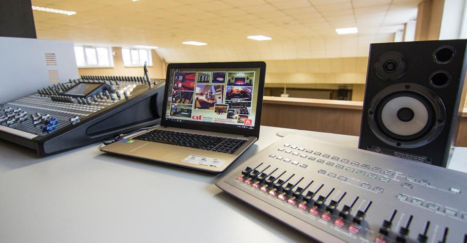 | Звуковое оборудование | Акустические системы – VOLTA (КНР) Усилители мощности – VOLTA (КНР) Микрофоны и радиосистемы – VOLTA (КНР), DSPPA (КНР) Системы управления – VOLTA (КНР) Громкоговорители – VOLTA (КНР), DSPPA (КНР) Специализированная мебель – IMLIGHT (Россия) Видеопроектор – EIKI (Япония) |