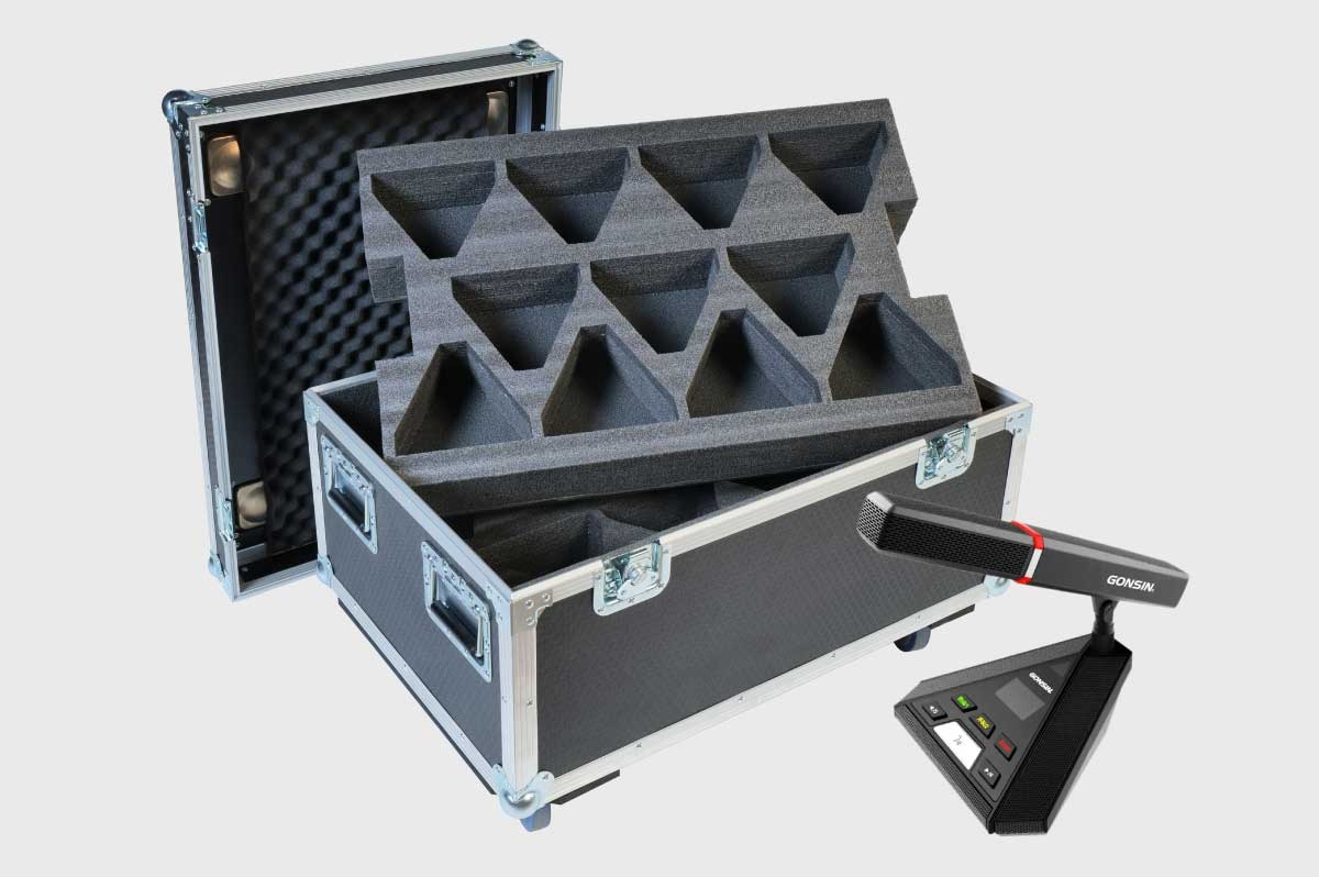 Новые кейсы с многоуровневым ложементом для хранения и транспортировки конгресс-систем уже отправились на объект. Заказ нестандартный. Поскольку зал многофункциональный трансформируемый, оборудование для проведения конференций и конгрессов не может быть установлено стационарно. Отсюда и главная задача для конструкторов ТМ ИМЛАЙТ - разработать удобную мобильную систему хранения для нескольких десятков единиц оборудования. Так, благодаря многоуровневому ложементу в один кейс размером 809х569х536 мм помещается 22 конгресс-системы с микрофонами. Всего изготовлено четыре таких кейса.
