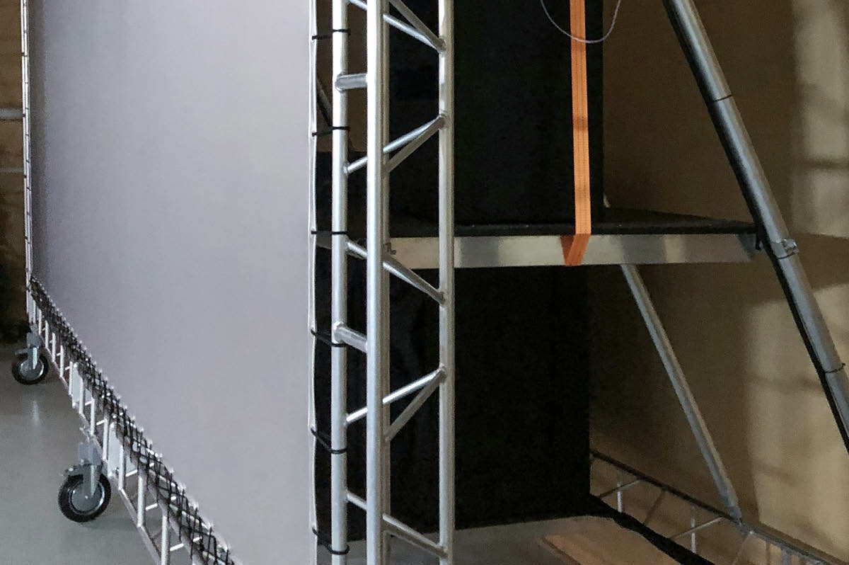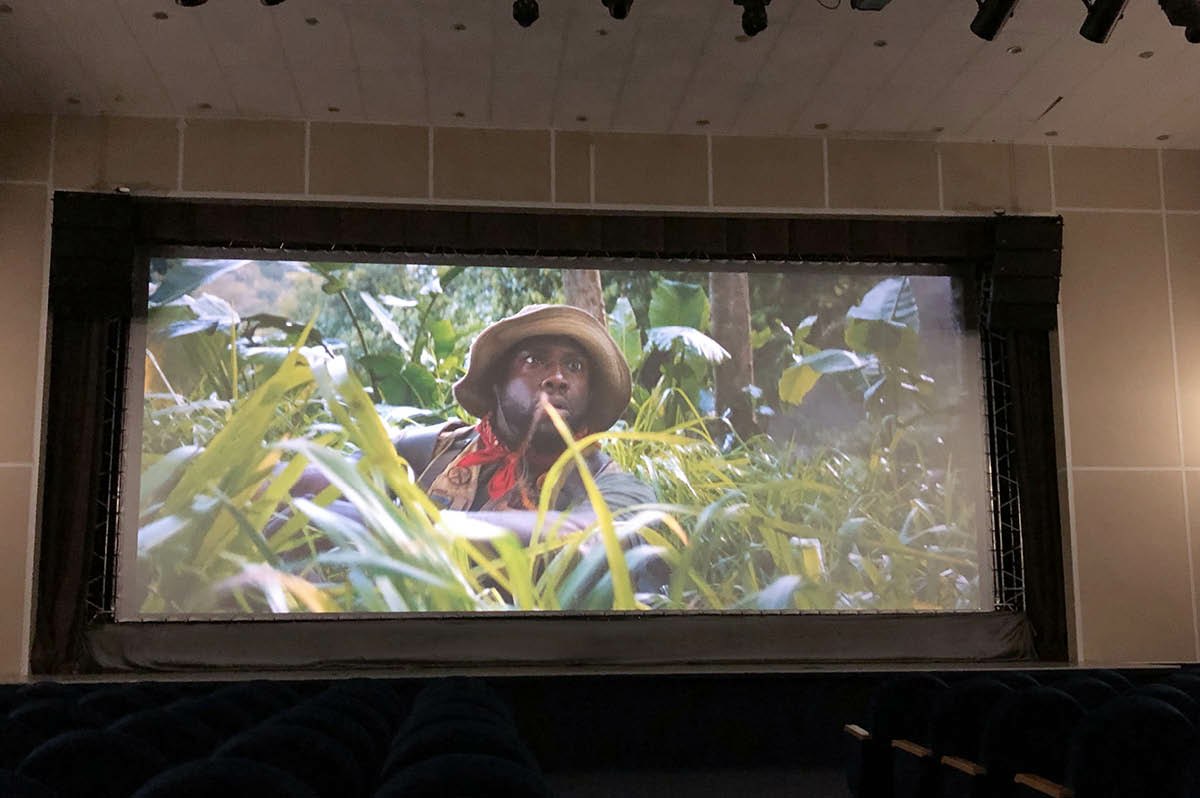 Этим решением и стал откатной экран – специальная рама с подиумами под звуковое оборудование для кинопоказа. На саму раму устанавливается полотно киноэкрана, а сзади на определенной высоте – заэкранные звуковые системы и сабвуферы. Вся конструкция вместе с оборудованием легко откатывается к задней стене сцены и также легко возвращается на авансцену для следующего кинопоказа. До конца года мы планируем к заказу еще один мобильный экран – это типовой проект, который мы будем предлагать там, где сцена не позволяет иных решений.