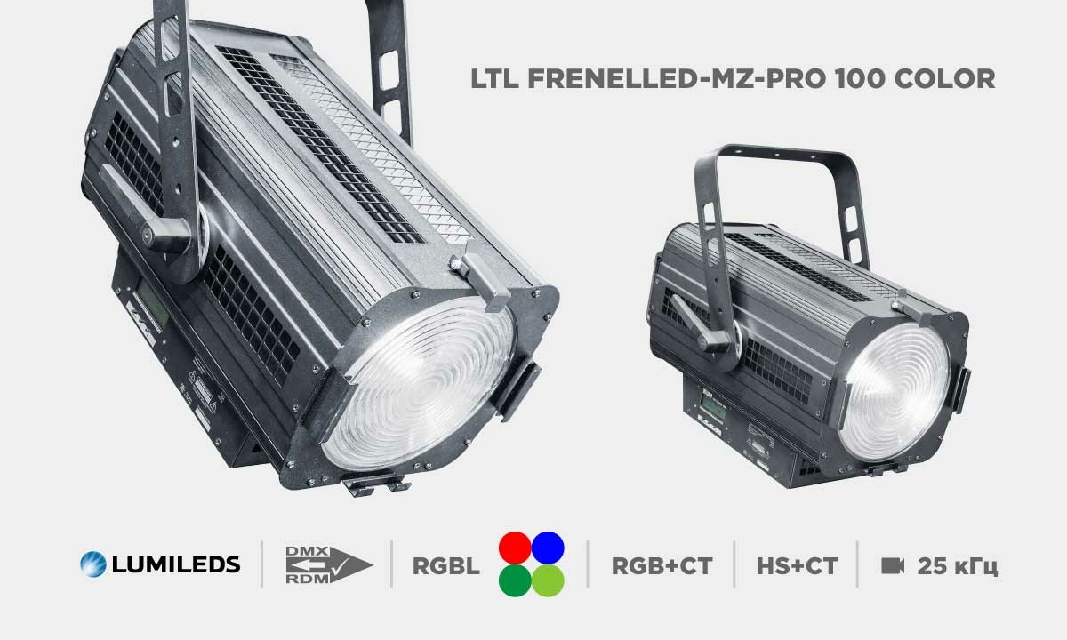 Новый прожектор LTL FRENELLED-MZ-PRO 100 дополняет линейку приборов LTL COLOR, которая состоит из театральных приборов для заливки задника, заливки сцены, LED PAR-приборов для маленькой и большой сцены.