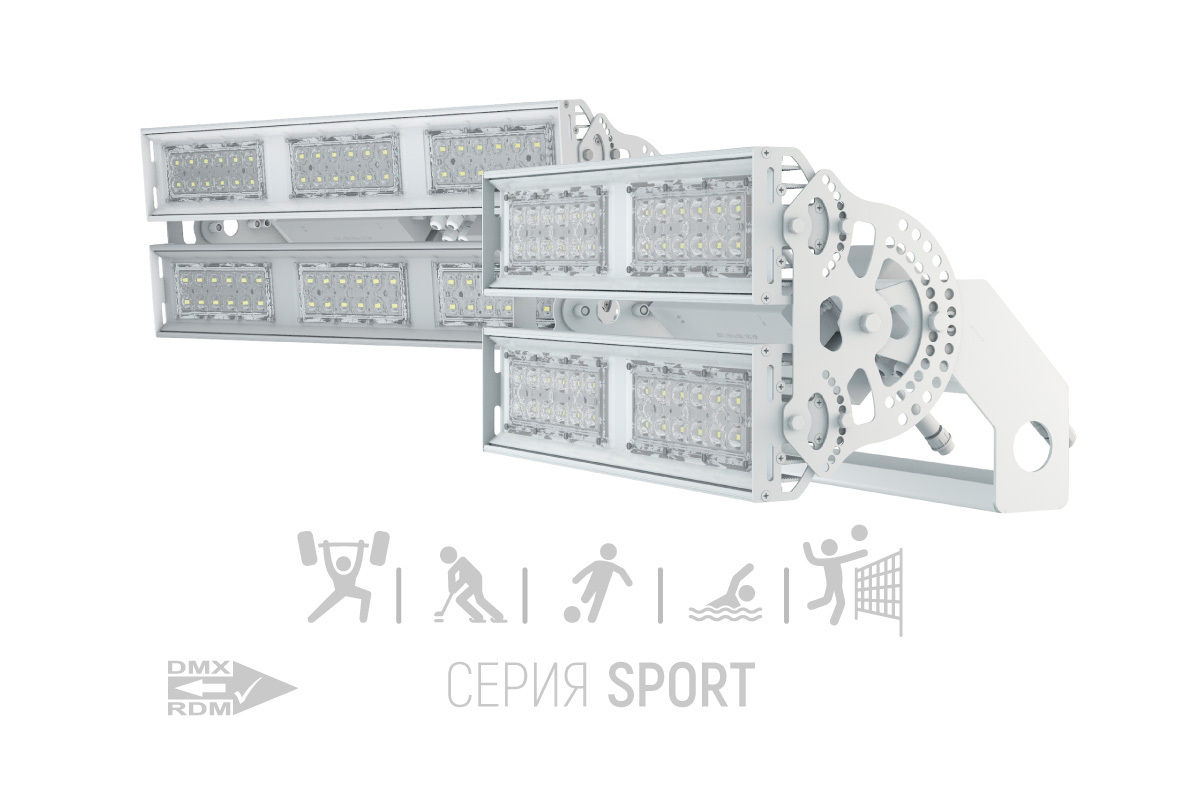 Прожекторы серии SPORT предназначены для освещения открытых спортивных площадок, стадионов и любых сооружений спортивного назначения. Приборы позволяют регулировать яркость освещения дистанционно с пульта управления освещением. Одно из ключевых преимуществ приборов серии SPORT, обеспечивающее комфорт для зрителей и спортсменов, а также необходимые условия для видеосъемки и телетрансляций – полное отсутствие пульсации при любом уровне яркости.