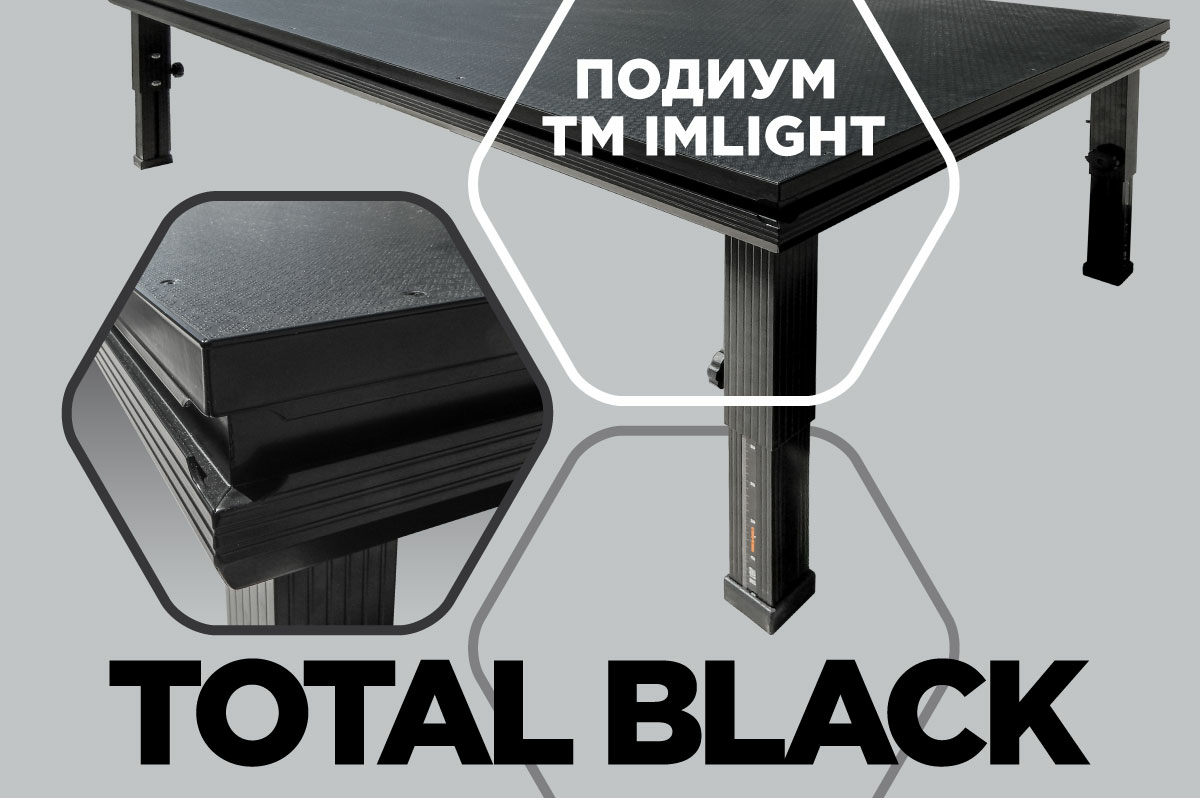 Производство подиумов и кейсов ТМ IMLIGHT ещё весной этого года полностью перешло на черную фанеру с фактурой HEXA (шестигранник), сейчас же по желанию заказчика в черный цвет могут быть окрашены и алюминиевые детали. И не только в черный! Возможности производства позволяют окрашивать элементы подиума порошковым методом в любой цвет по стандарту RAL – это весьма актуально, если подиумная конструкция используется в дизайнерских интерьерах.